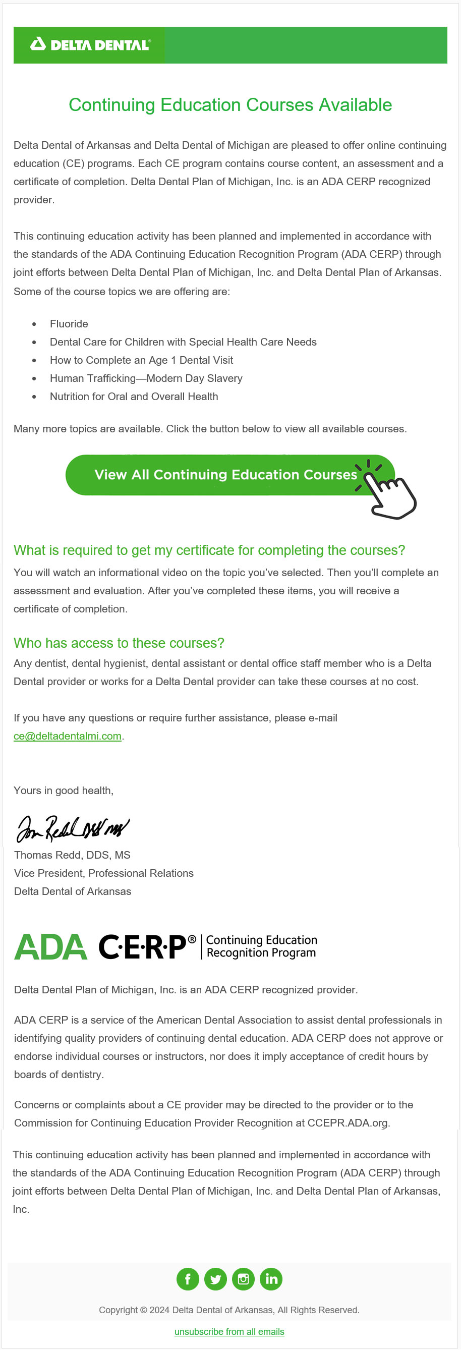- Email: Continuing Education Courses Available