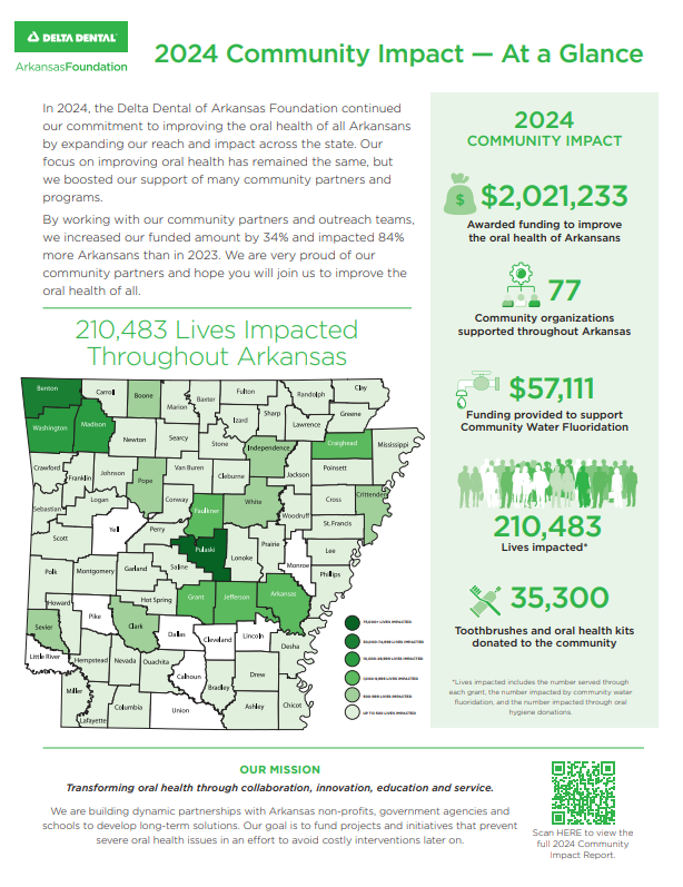 $185,00 Delta Dental of Arkansas Foundation Grant funds oral health education and resources ...